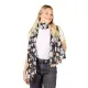 Estampa: Floral abstracta en tonos negro, beige, verde oliva y blanco.